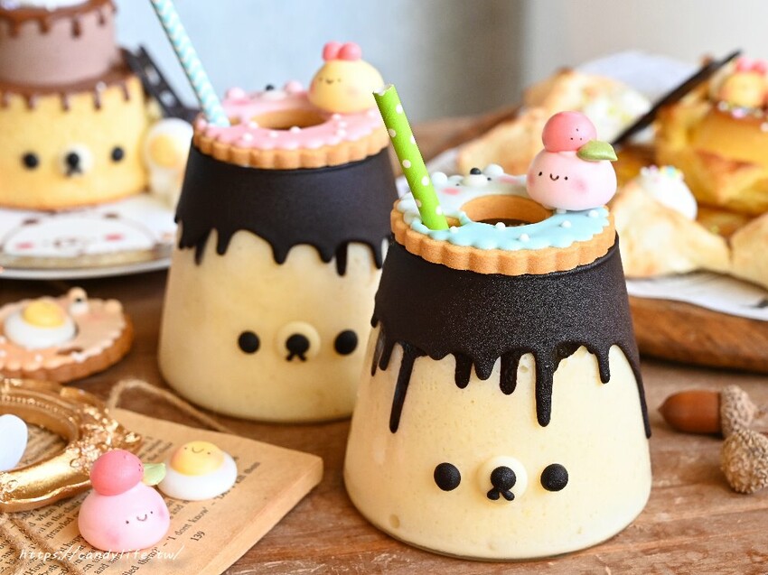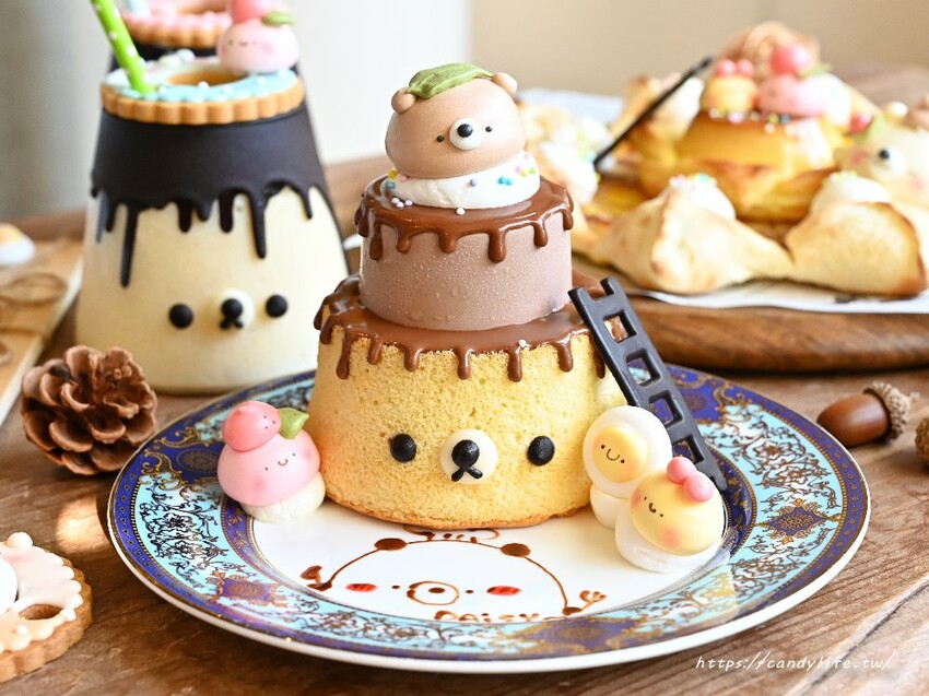 這款布丁熊的移動國度雙層蛋糕也好萌哦~以原味戚風蛋糕為基底,口感蓬鬆綿密,散發著淡淡的雞蛋香味,中間夾層手工自製的起司乳酪餡,淋上榛果巧克力淋醬,讓原味戚風蛋糕多了乳酪鹹香及榛果巧克力的香甜滋味,層次相當豐富,最上層再搭配香濃的巧克力慕斯,整體吃起來也不會讓人覺得甜膩,好吃又好拍
