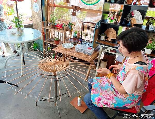 李家紙傘,位在三級古蹟「敬字亭」附近,店內琳琅滿目的各式紙傘全是手工製作,而且手工繁複,闆娘正聚精會神的手作紙傘中