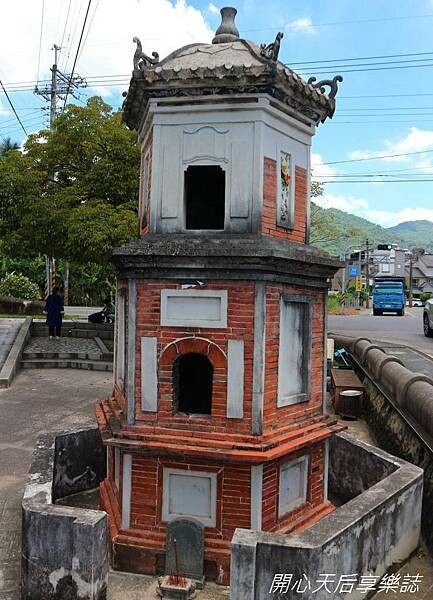 美濃三級古蹟-敬字亭,位在道路中央,三層式建築,最底層供奉五尊與科考有關的神祉,"敬字惜字"是每個美濃人都有的良好美德!