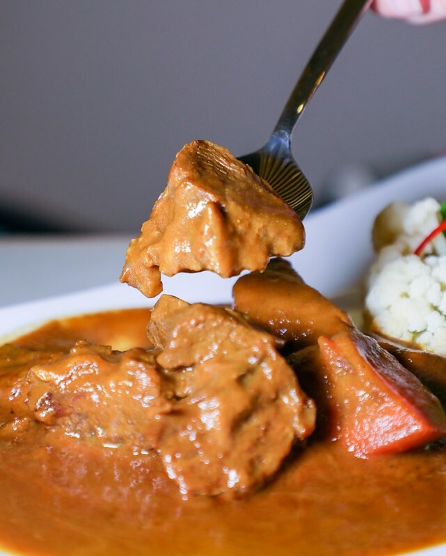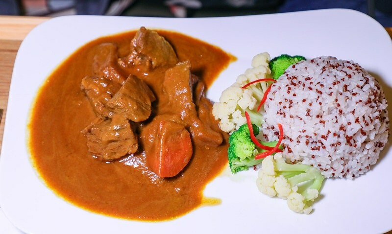 友人點的牛肉咖哩,咖哩有一點像日式家庭風,甜、辣及香料氣息蠻均衡的,要說不好吃不至於,但要說有什麼特色好像也沒有..牛肉稍稍柴了一些,但也不致於礙口就是,飯是黎麥飯倒是煮得不差。