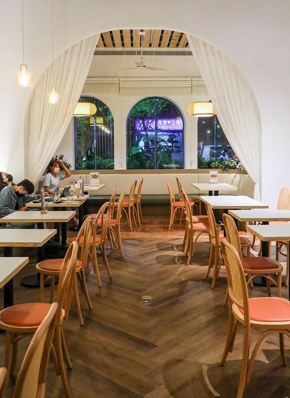 而且其中靠窗的座位區佈置的算是蠻漂亮的,以白布幔為主,稍帶一點歐式的浪漫風,頓時吸引了不少ig等網美前來打卡。