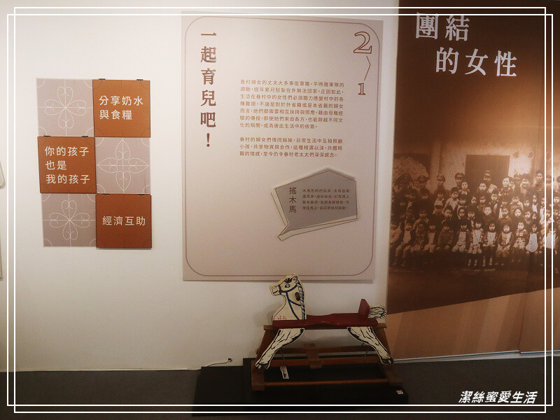 眷村媽媽都擁有一雙巧手!擅長剪裁與縫補衣物,也因為生活辛苦,大家彼此團結,互相幫忙,互通有無,一起帶孩子等,分享奶水與食糧。