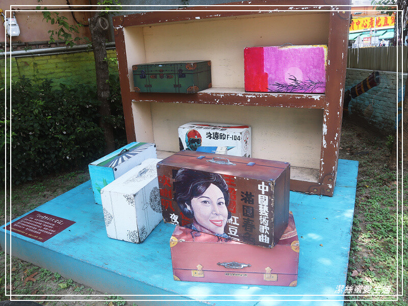 對面則是復古彩繪皮箱,在當年,很多人都是匆匆忙忙只帶一卡皮箱就搬遷來台,雖是簡單的物品,但想必提起來相當沉重,是故對眷村人們來說,大皮箱是重要的歷程,也代表著濃濃鄉愁。