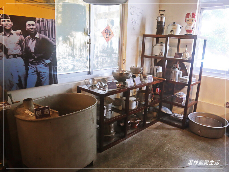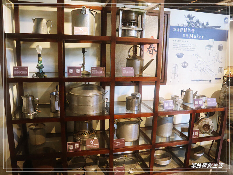 這區展示眷村飲食文化,有復古的水壺和便當盒,以及廚房造景等。