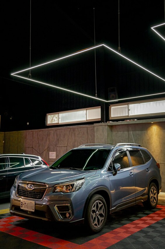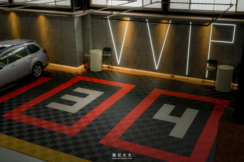 沒有想到喝杯咖啡還有這麼高級的打光車位可以使用(笑),第一次去還不敢把車停進去了,深怕這裡只能停放高級跑車呀,店家還很好心的提醒我們可以直接把車子停進來,不知道是不是因為四周圍都是停放跑車及名車,燈光打下去後瞬間自己的蘇巴魯也一同升級了?!