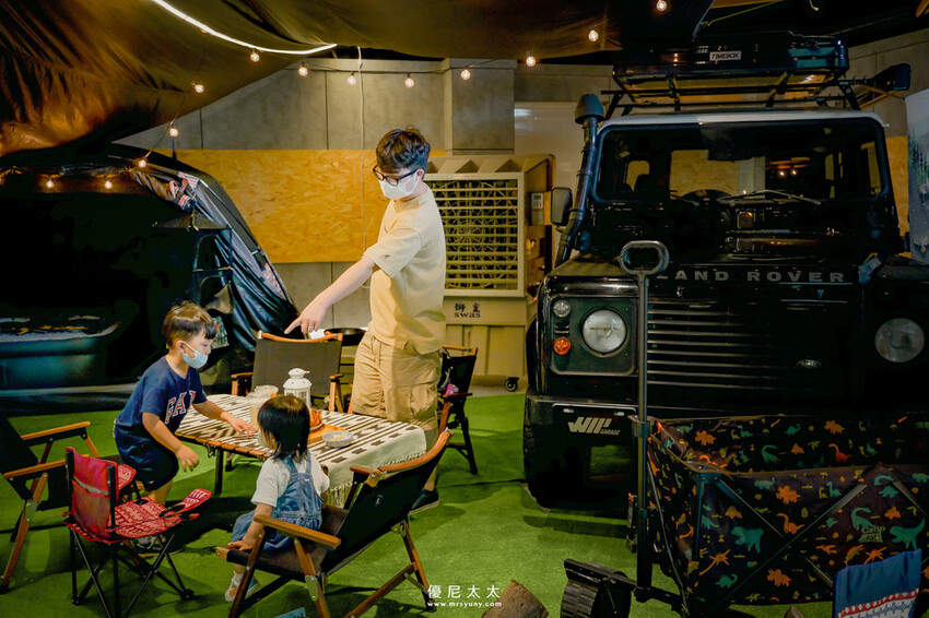 ■咖啡廳設施:專屬VVIP車位(倉庫內有位置即可免費停車)、親子兒童遊戲室、兒童電動車及滑步車免費使用、貨櫃希臘白色風情座位區、城市露營座位區、老D、VW T2、得利卡各種老車進駐