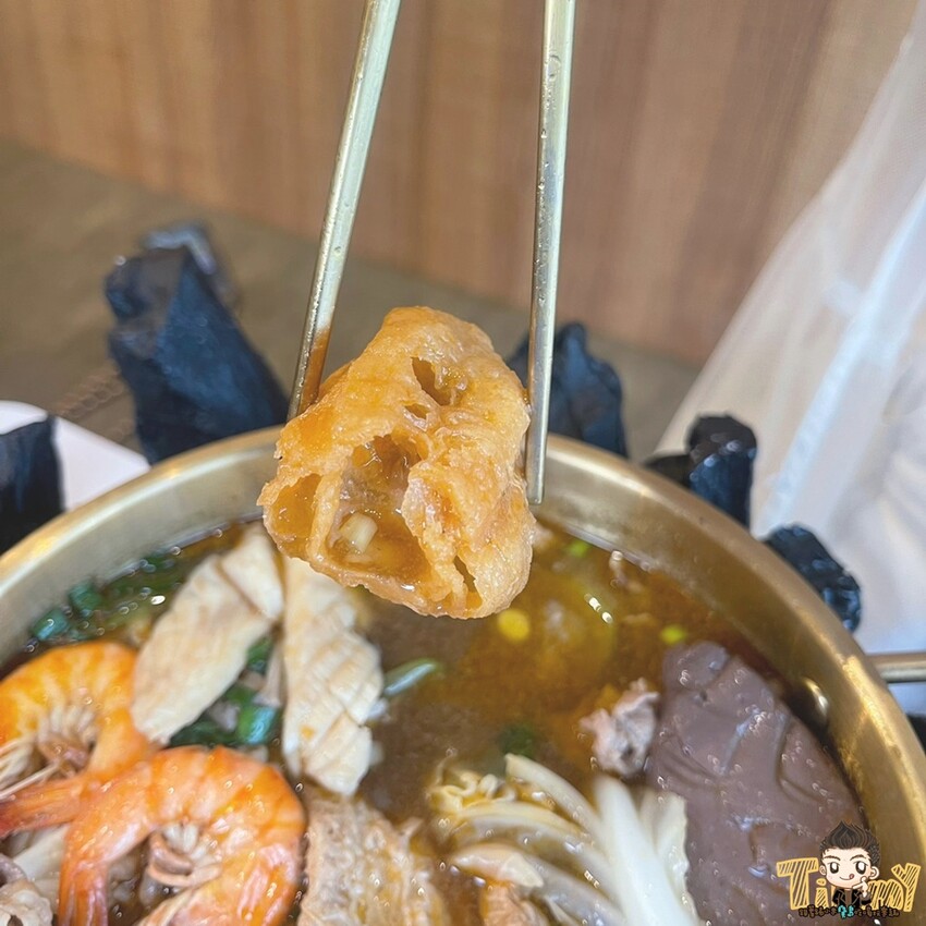 老油條建議泡在湯頭5-10秒,就可以有軟脆的口感,尤其吸著甘甜的麻辣湯頭,真的很讚喔
