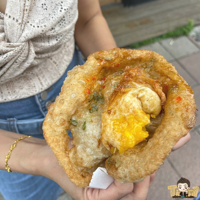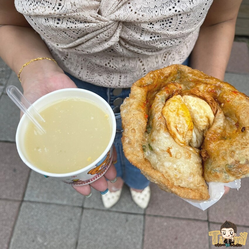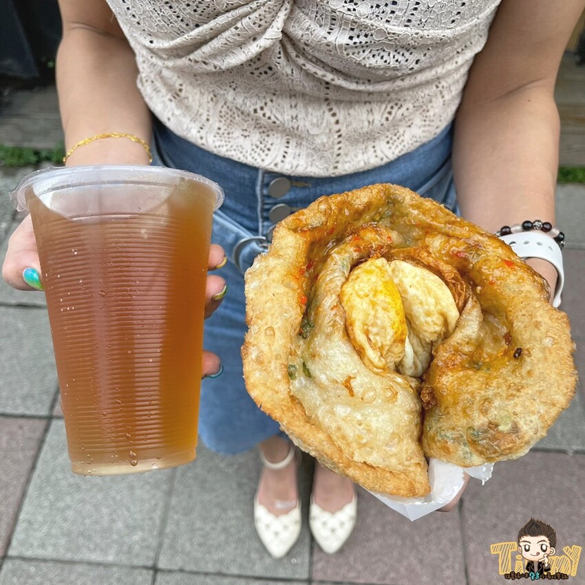 手桿餅皮的炸蛋蔥油餅,配上冬瓜茶或玉米濃湯。