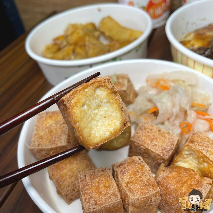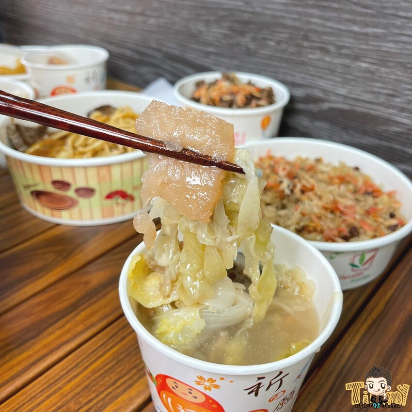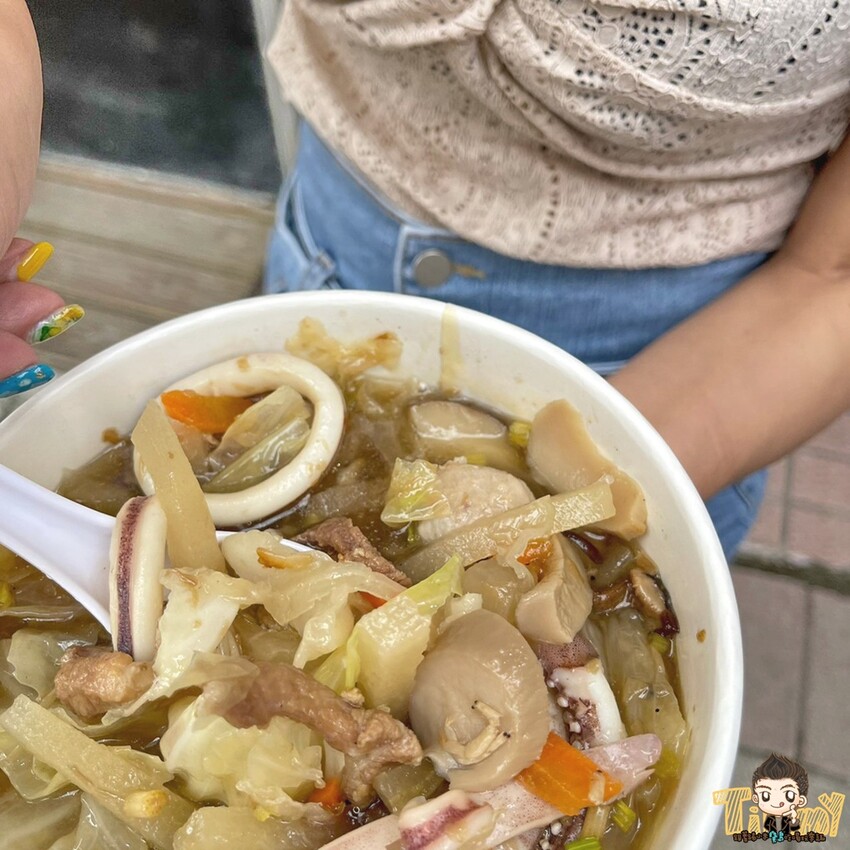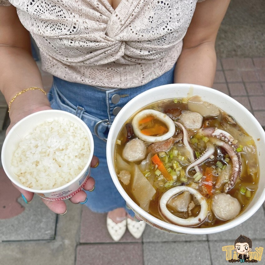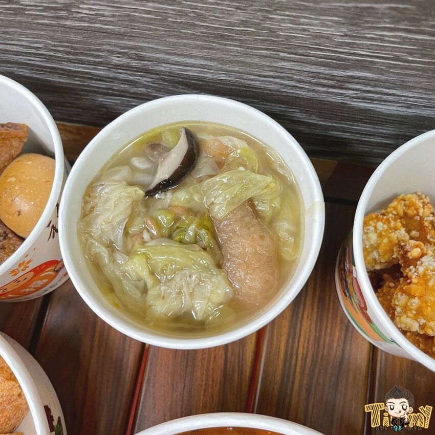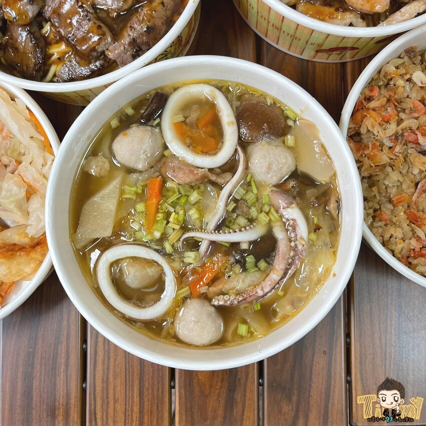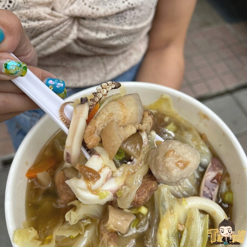老闆使用了多種食材,像是魷魚、櫻花蝦、花枝、香菇、白菜等一起滷製,不只入味,口感清甜又好吃