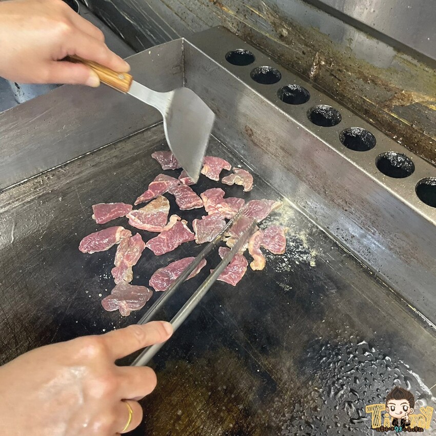 老闆特別強調牛排都是買整塊原肉回來處理再切成塊狀,再放到鐵板上煎香的
