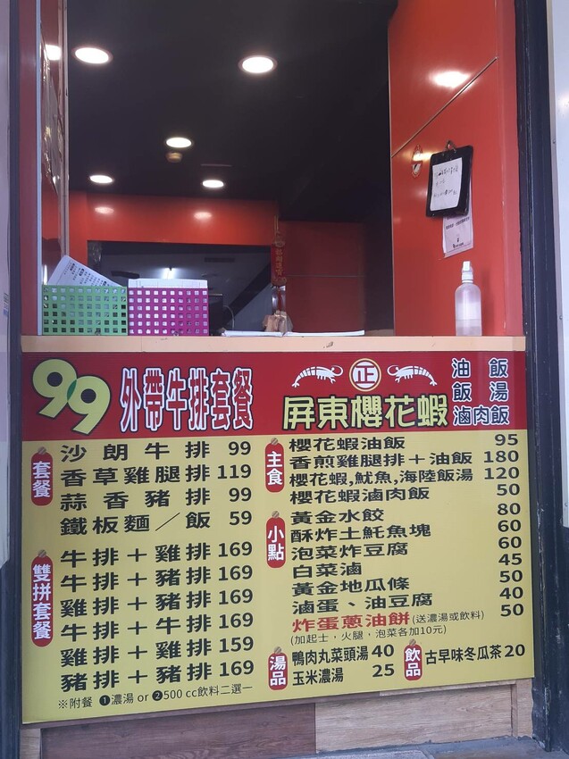 粉絲團:99元外帶牛排套餐正屏東櫻花蝦油飯/飯湯/滷肉飯
