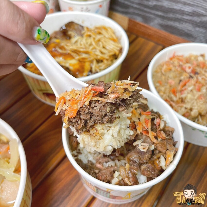 老闆還推出了讓小米很驚豔的屏東櫻花蝦油飯、有著屏東媽媽手路菜風味的櫻花蝦魷魚海陸湯飯,料超級多,可以買回家幫家人加菜了