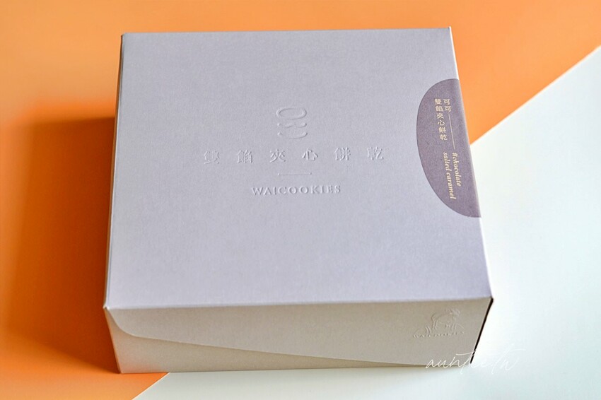 七月熱騰騰新推出的雙餡夾心餅乾,有可可雙餡與焦糖雙餡兩種口味。這次吃的是可可口味,走的是灰色的質感禮盒包裝。