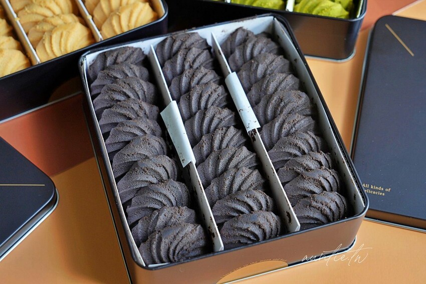 WA!COOKIES 的禮盒都是採單一口味包裝,口味不會混在一起,先不說口感,光是拿起來的手感真的是酥鬆到猛掉渣渣,挑戰全台最酥鬆曲奇真的不是在開完笑的,簡直是碰瓷曲奇來著!WA!COOKIES 的曲奇餅口味有12種,是目前看過曲奇餅中口味最多的,很多茶口味的曲奇餅,本身是茶控,看到真的都好想試試。