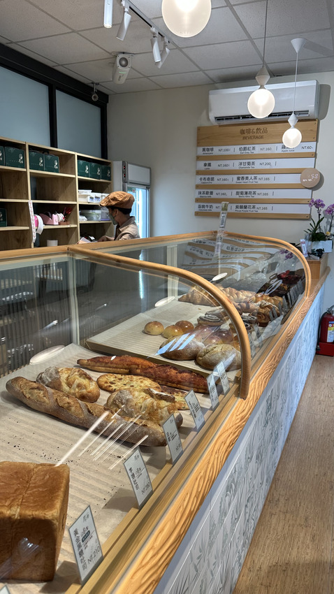 主要店面分成內用區及外帶區,內用低消為400元且不收服務費,一進店內充斥著濃濃的小麥香,映入眼簾的各式各樣麵包就靜靜的躺在架上,選項眾多但要注意皆以現場販售麵包為主,千萬不要直接看到菜單上有什麼就畫什麼喔。