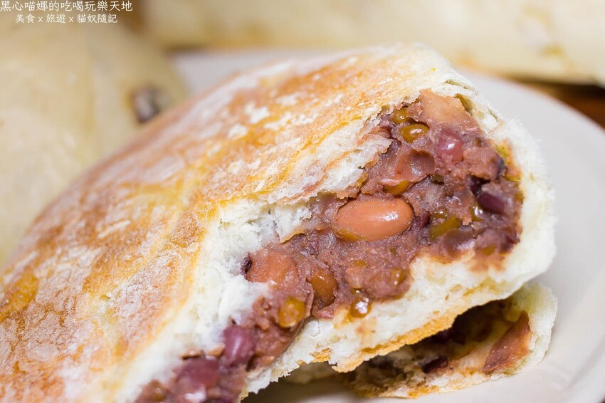 包餡的餅子有紅豆和芋頭這兩種內餡,它的薄外皮一樣有著麵香與嚼勁,內餡是紅豆和大紅豆兩種豆子混合所製,所以吃起來除了有紅豆餡的深沉濃蜜,更添入一股大紅豆的明媚清香,不會單一味道吃到底,重點是餡料不會很甜耶!我超愛!