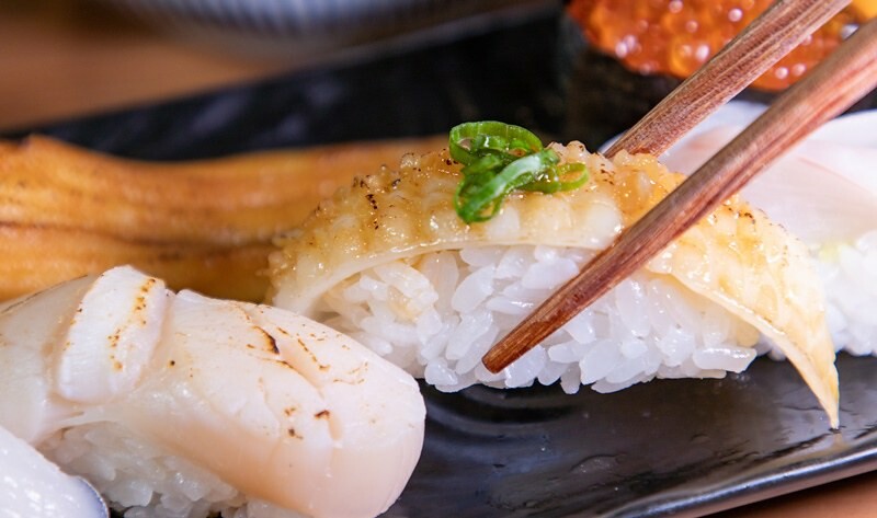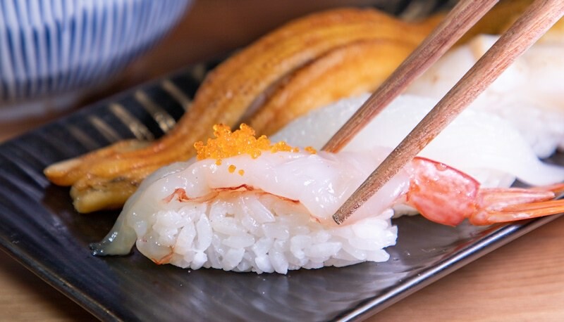 甜蝦加上魚卵。直到這時我才發現老闆的醋飯煮得也不錯,尤其是醋甜的平衡感,醋飯的口感也是我喜歡偏沒有存在感的軟化度。