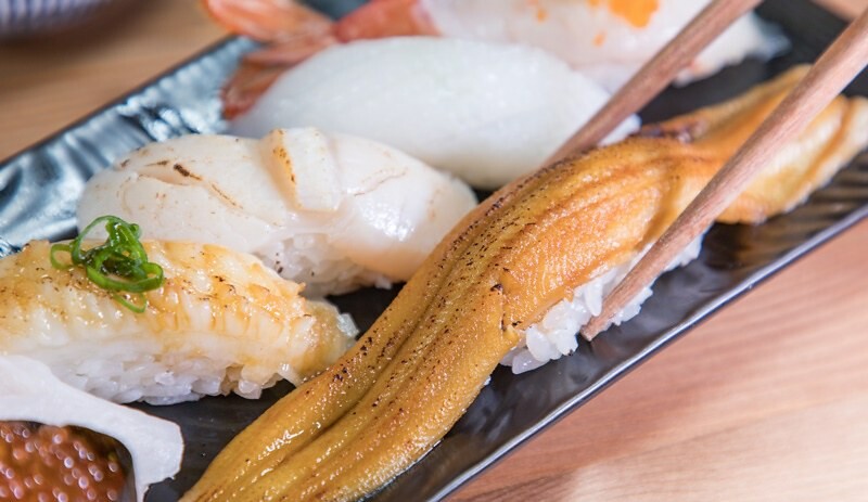 我最愛的星鰻整隻超長,稍略炙燒帶出焦香氣,又綿又甜好吃的亂七八糟,但因為在有冷氣的空間,建議盡速食用省得變乾。