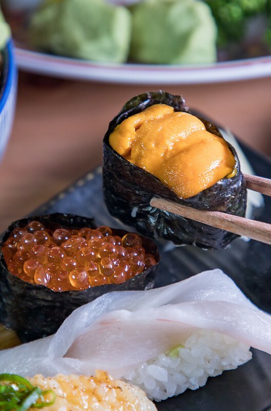 海膽、鮭魚卵軍艦,剛剛介紹過了,這回換友人吃XD