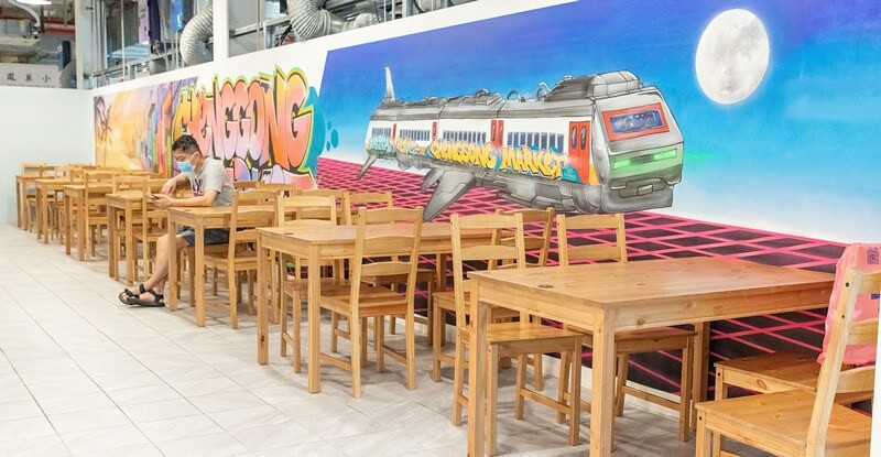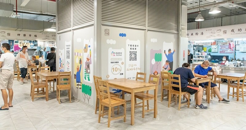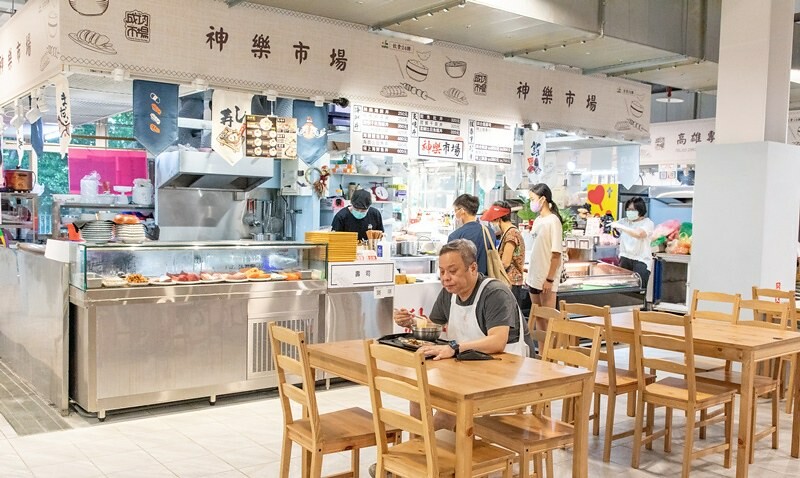 從側面的樓梯上了二樓發現,這個市場美食街比我想像還明亮、乾淨許多,不止沒有異味還冷氣開放,座位區也相當漂亮舒適,更不至於擁擠。