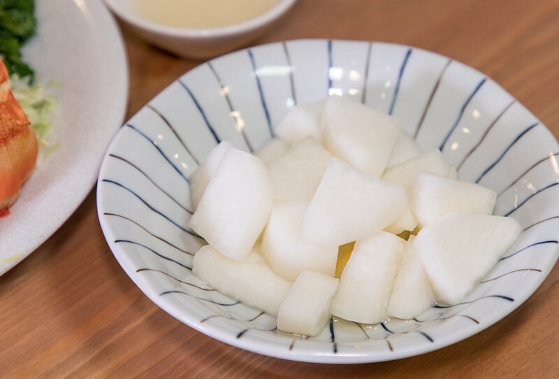 友人點的漬蘿蔔清脆酸甜,喜歡到想帶回家當下酒菜,沒想到居然賣光了...。