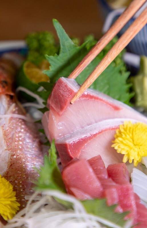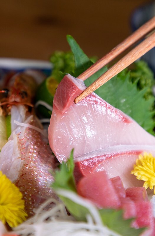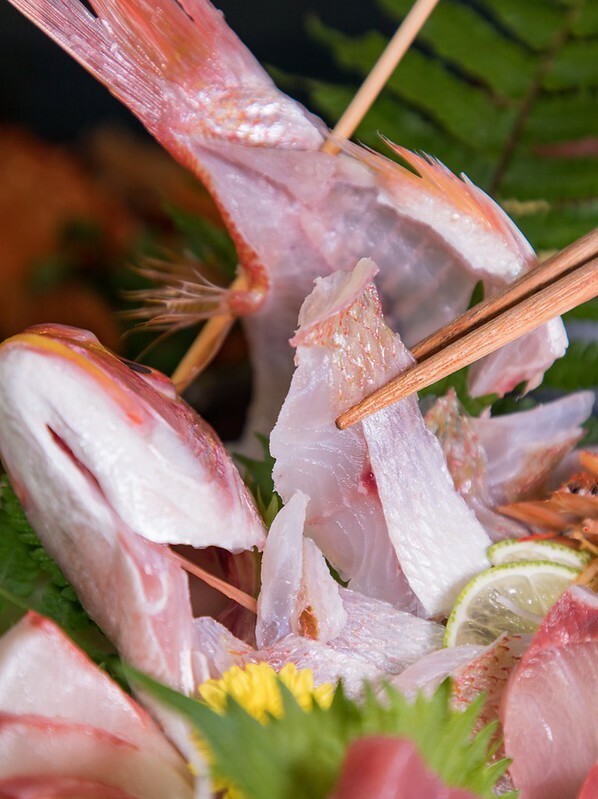 紅甘、鯛魚、海鱺、鮪魚都非常有水準,加上都是我偏愛的厚切,可謂口口滿足,好奇問了老闆,就他的說法,這些現魚都是他自個兒去基隆的崁仔頂,或濱江市場,或中央市場採買的,因為他有三四家店量大一起採買,才能提供如此物美價廉的生魚片。