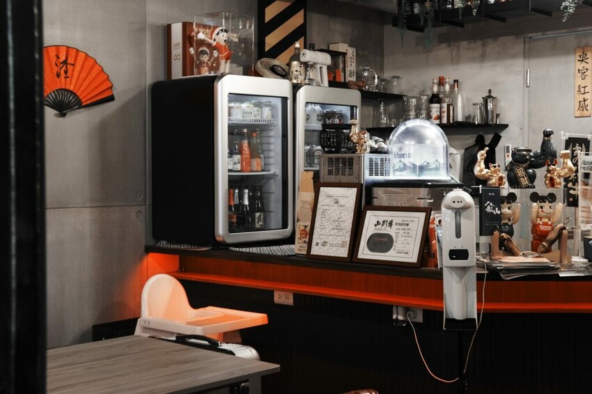 ▼【渣女•深夜和牛燒肉燥飯】店內小巧精緻,進店後可以看到半開放式的廚房,還有陣陣的料理香氣傳出,裝潢結合摩登復古與東洋元素,搭配牆面上的渣女語錄,給人一種新穎有趣的氛圍。