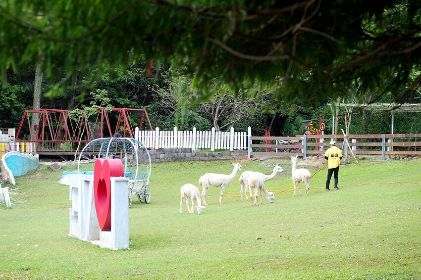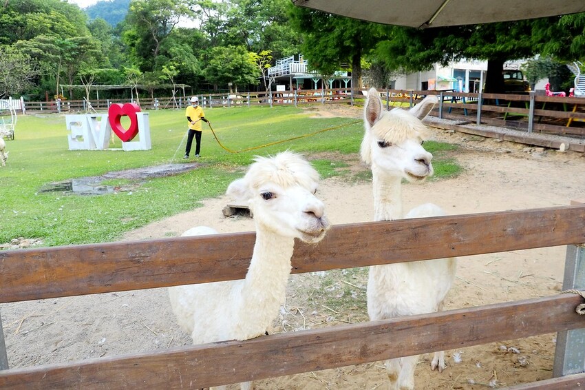 球哥不知去哪聽到路人說要小心羊駝會吐口水所以從頭到尾都離牠們超遠