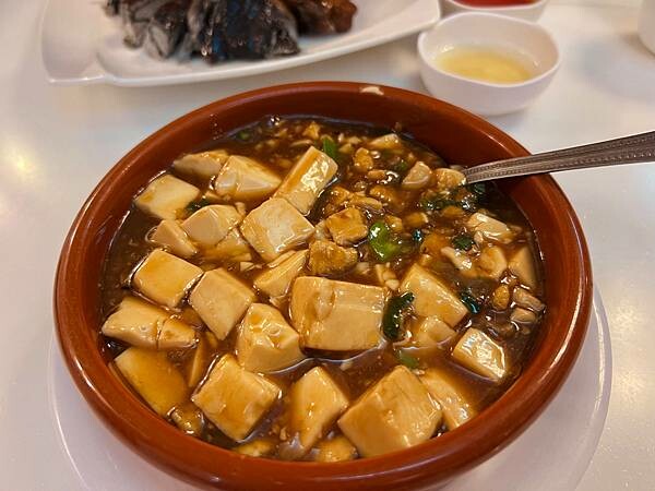 雞家豆腐(298元) 其實是有點像麻婆豆腐的做法,就是用嫩豆腐加肉末炒蒜,只是我們同行有小朋友,所以沒有炒辣,喜歡吃辣的也可以加辣版哦~~這個就是一個下飯神菜,舀一匙到飯中,絕對會讓你不自覺一直扒飯下去,雖然看似小小一盆,但因為還有點其他菜,所以這個份量四個人點小份也算剛好