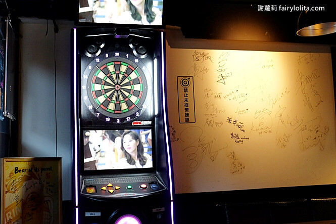 喝酒的地方,飛鏢機絕對是必備,利用上菜空閒時間、亦或是酒足飯飽之餘,跟三五好友對戰一下也是挺有意思的。