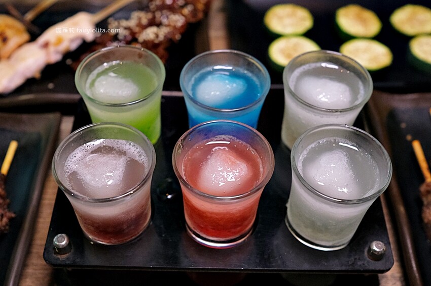 由六種顏色組成,看起來顏色超繽紛,每杯味道都不一樣,從酒感重到酒感輕的通通都有,一次就讓你嚐遍六種不同的味道,這個在主顧客部份可是非常搶手。