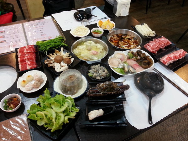 喔!對了,若海鮮鍋的湯底喝膩了,也可以自己到配料區去取用泡菜或是麻辣鍋的醬料,再加進火鍋裡面,這樣又可以變成另一種不同味道的火鍋喔!等於是一鍋好幾吃耶~超酷的!