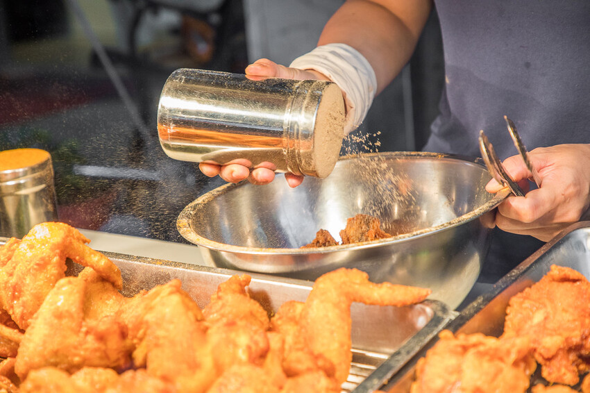 湯翅還是最熱門,整盆整盆的倒,幾乎是一出鍋就被買光,炸一鍋大概是五分鐘,如果賣光可以稍微等一下,食材新鮮就好吃,巷口湯翅中壢店都是用新鮮的雞,所以簡單撒點胡椒鹽就很好吃
