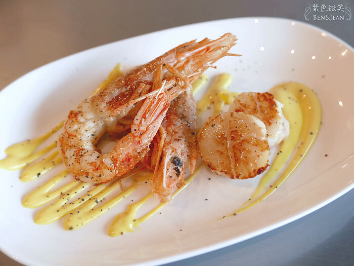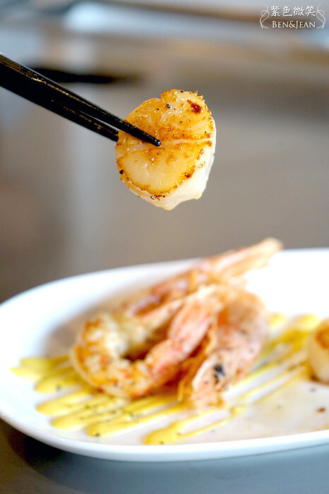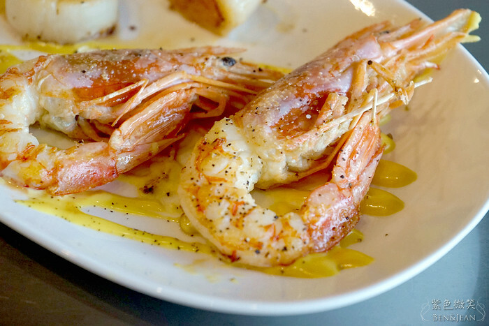 這次點的是雙人套餐B,裏有菲力牛、羊排、松阪豬 (三選一),生蠔,干貝,鱈魚,天使紅蝦~~感覺滿豐富的,這套餐點也是店裏最貴的