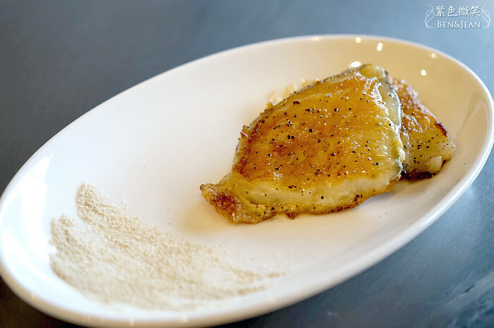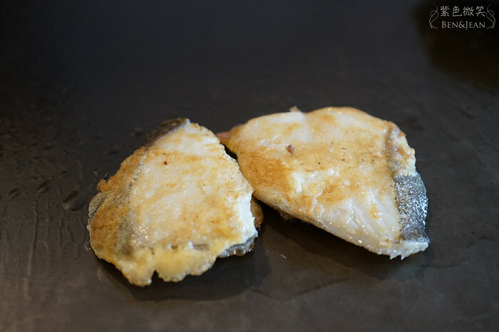 這鱈魚上面有一層薄薄的粉,煎的赤赤的~~~外面微焦,裏面還是保有鱈魚一貫的鮮嫩~~很不錯!!