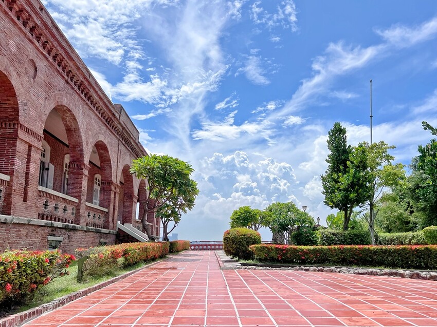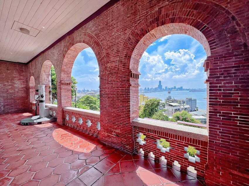 而領事官邸是過去英國駐打狗領事館的官員住處以及接待賓客的場所。官邸原建築式樣採典型英國殖民地建築樣式,為斜坡屋頂及方形木構迴廊,是在1900年的改建中,將屋頂改建為頂冠帶的磚造圓拱迴廊。來到領事館官邸,它坐靠鼓山上、前方是高雄港進出之大船、右可看西子灣日落、左可擁抱高雄港全景,無論在任何角度由上往下看去,真心覺得這處處都是美景。