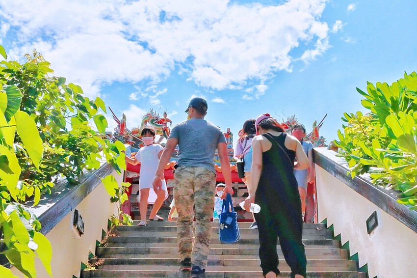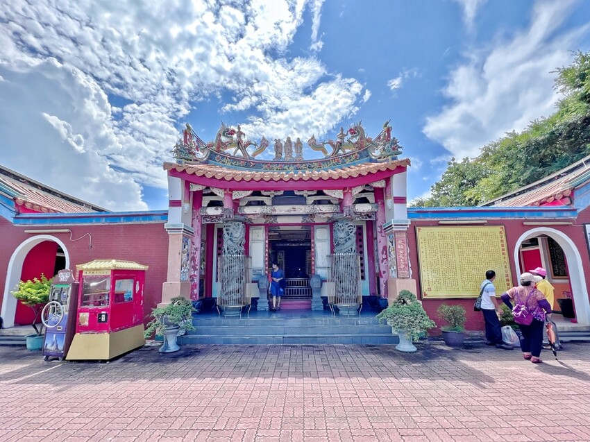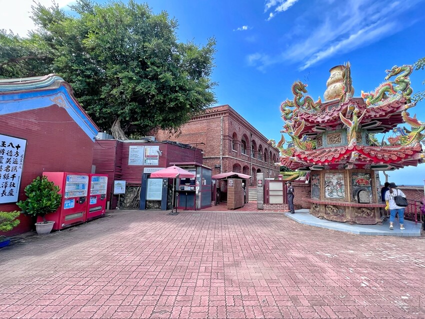 停好車就可沿著樓梯步道往上走去,走了不知道多少個階梯,終於走到了平台,來到平台上會先看到這座西子灣十八王公廟,而打狗英國領事館(官邸)就在右側,需要先行購票才可以進入參訪。