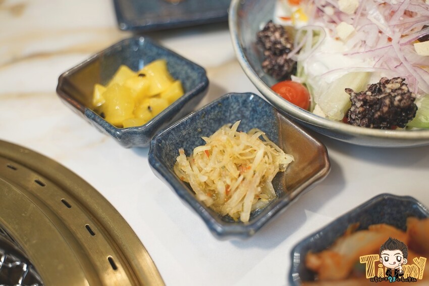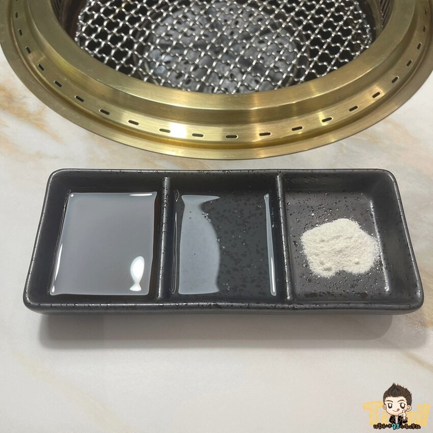 醬料盤有燒肉醬、檸檬汁和昆布鹽。