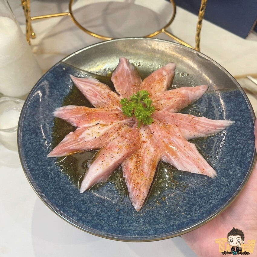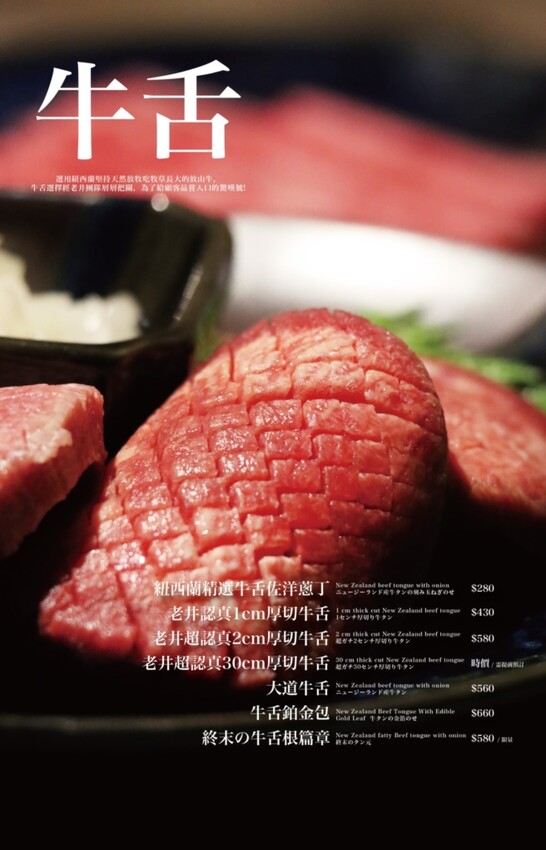 紐西蘭牛舌是屬於薄切的,可以加購159元選擇厚切的牛舌柏金包。
