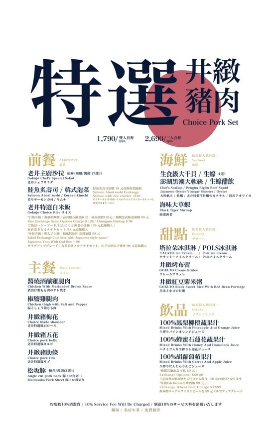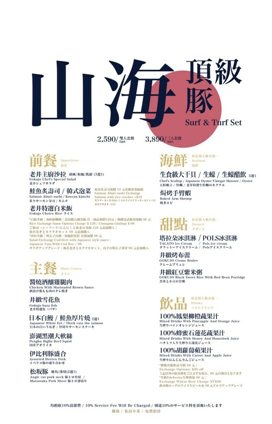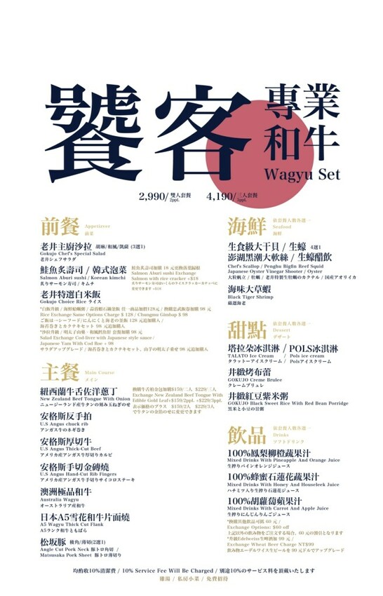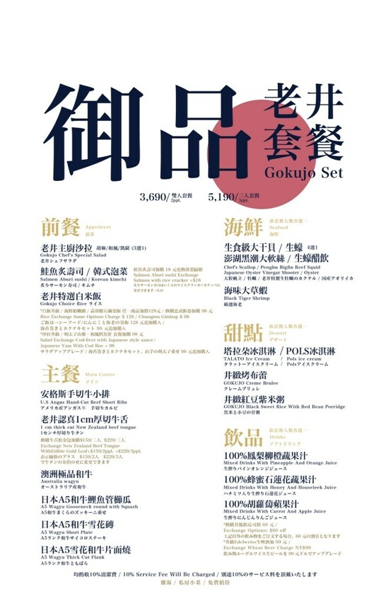 這是僅次於天花板的御品老井套餐/雙人(3690元),前餐部分跟剛剛介紹的饕客專業和牛套餐是一樣的