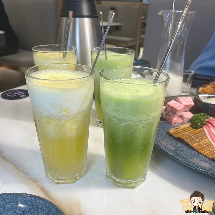 鳳梨柳橙蔬果汁有清爽的果香和清甜的口感,蜂蜜石蓮花蔬果汁也有甜甜的果香,很解膩