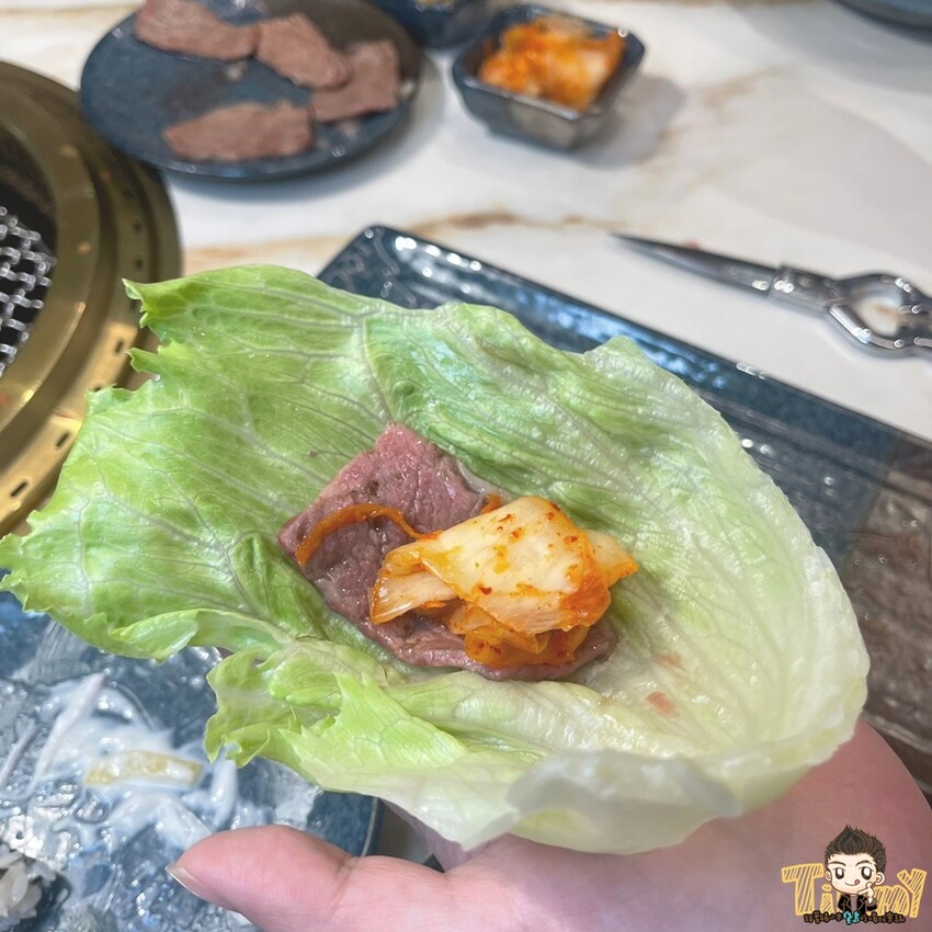 雖然跟牛舌比起來還是遜色一些,不過跟生菜、泡菜包著一起吃也挺不錯的
