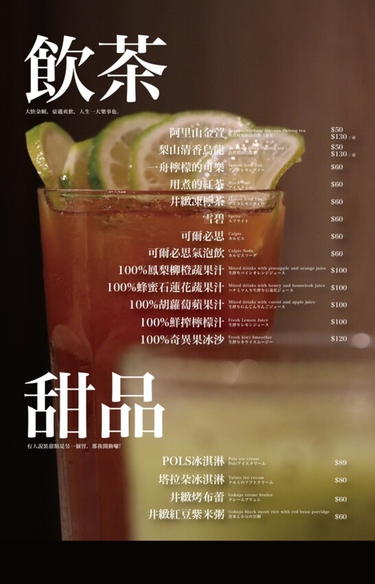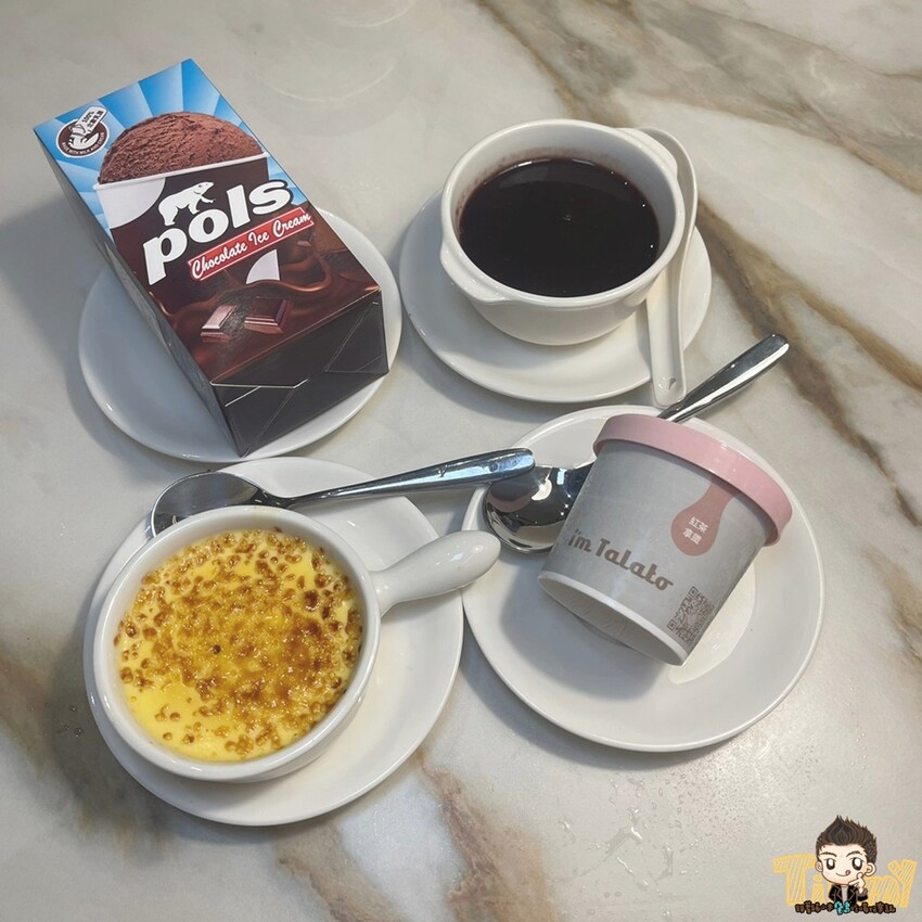 甜點部分,有塔拉朵冰淇淋、POLS冰淇淋、井緻烤布蕾和井緻紅豆紫米粥 (依套餐人數各選一種)。