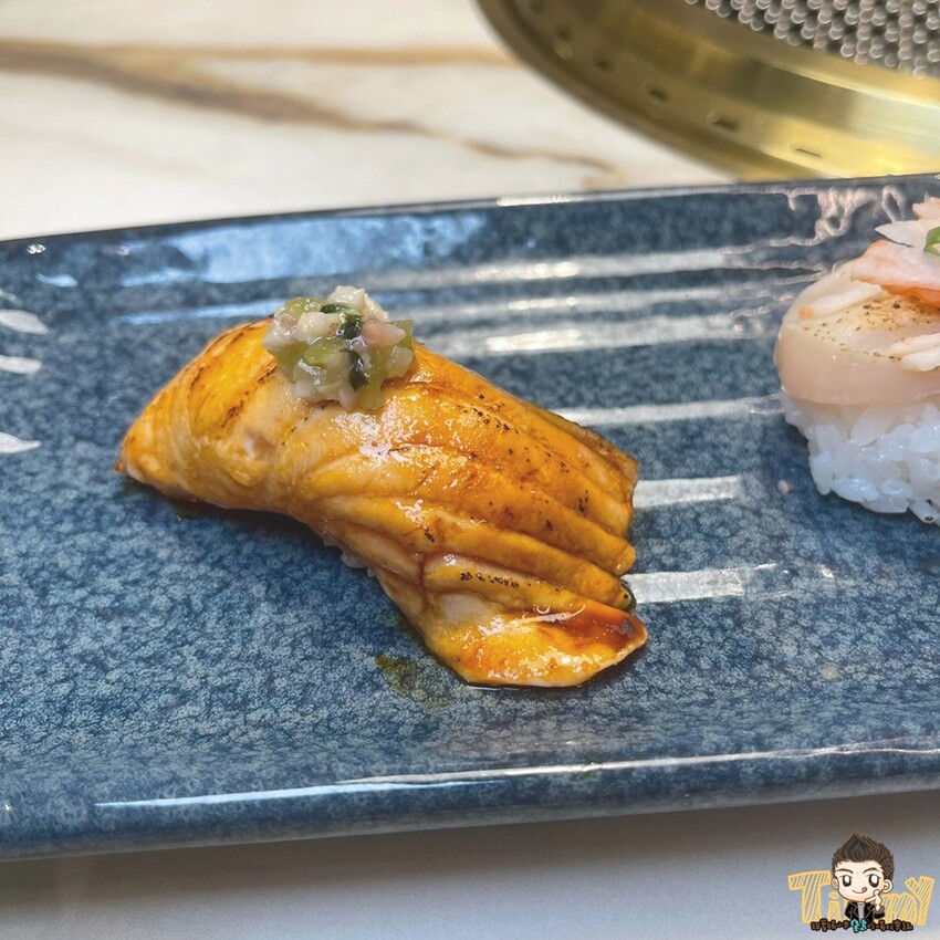 干貝炙壽司上還有蟳味絲點綴,真的很精美!