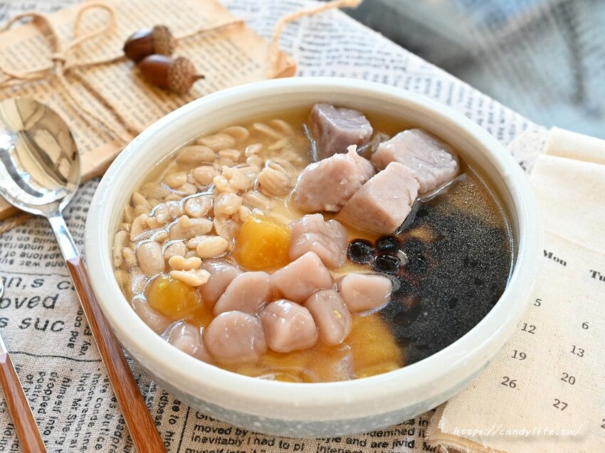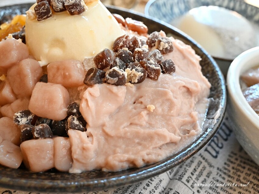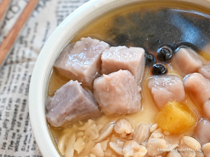 山裏山外的手工芋圓有芋圓跟跟地瓜圓兩種,口感非常Q彈,細細咀嚼還可以吃到淡淡的芋頭香氣及地瓜香氣