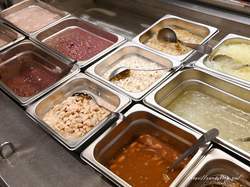 山裏山外的配料非常多,超過20種配料,大部份的食材都是老闆手工熬煮,費時又費工,除了常見的芋圓、紅豆、綠豆、大豆、花生、薏仁、珍珠等配料外,還有米苔目、粉粿、蘆薈、麻糬丁、椰果、鳳梨、芋泥等,配料選擇豐富