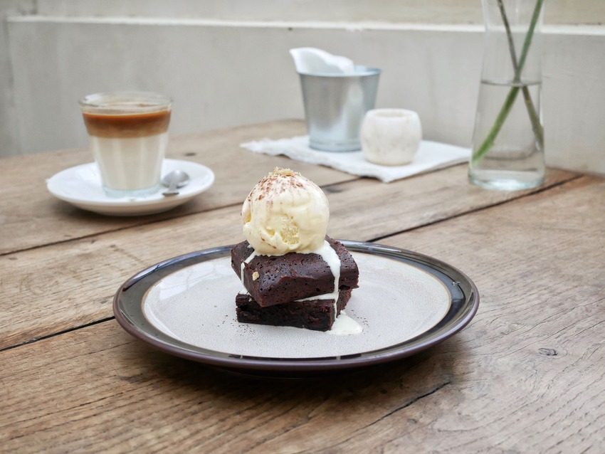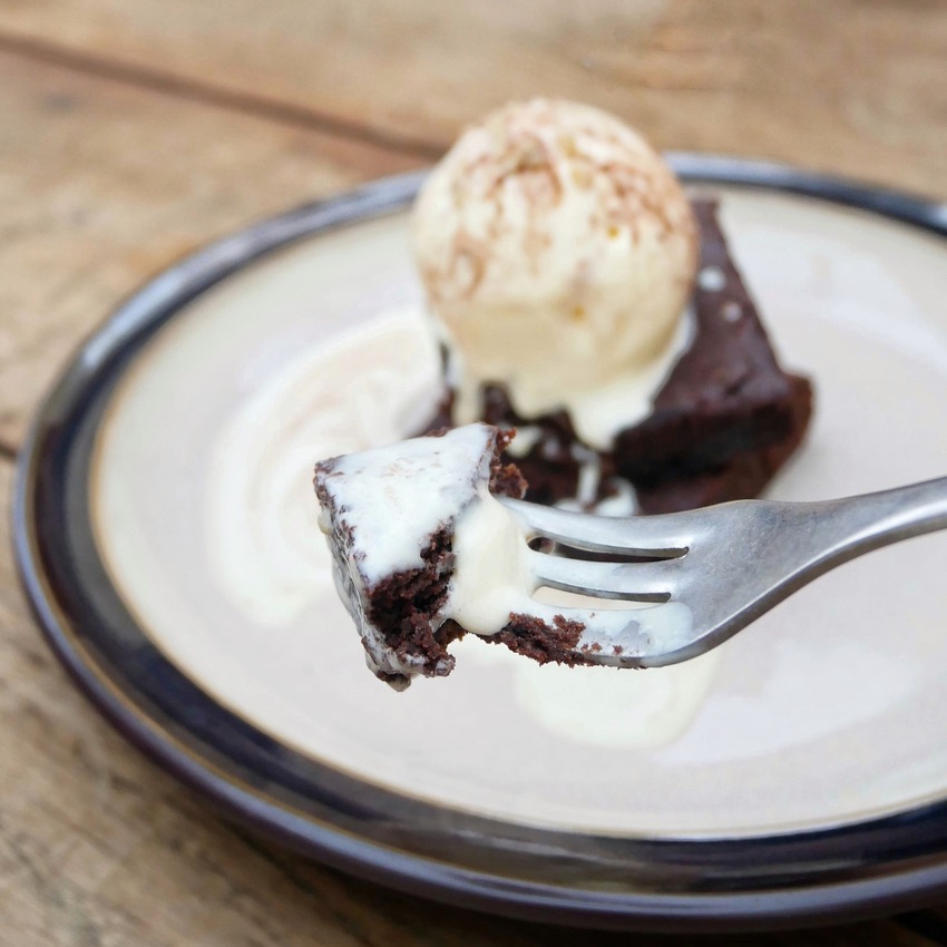 當日甜點No.1🥳 一切開,哇! 是很扎實的糕體,沾上微融化的香草