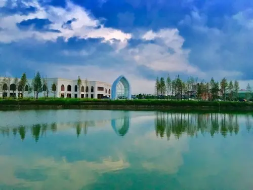 觀景平台在另一端,沿著環湖道路便能到達