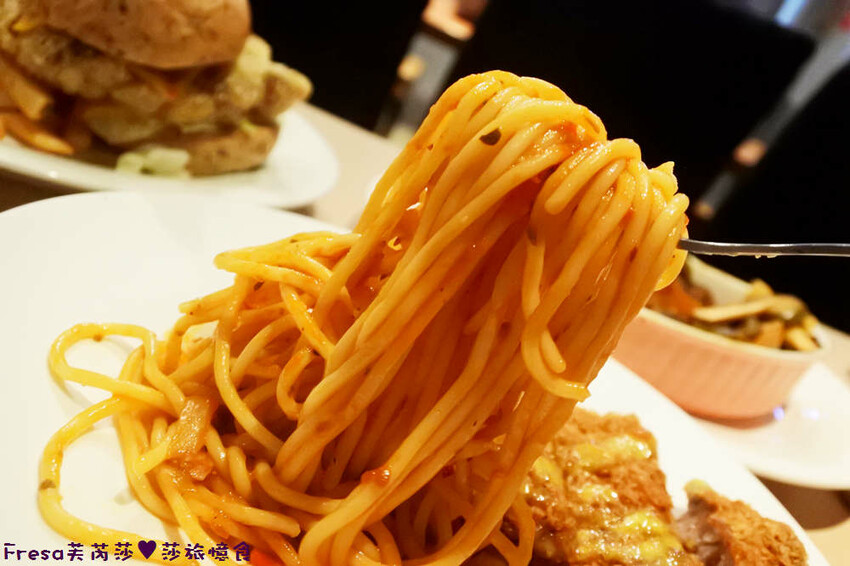 義大利麵也是帶一點脆度的,跟紅醬拌勻酸度夠味.