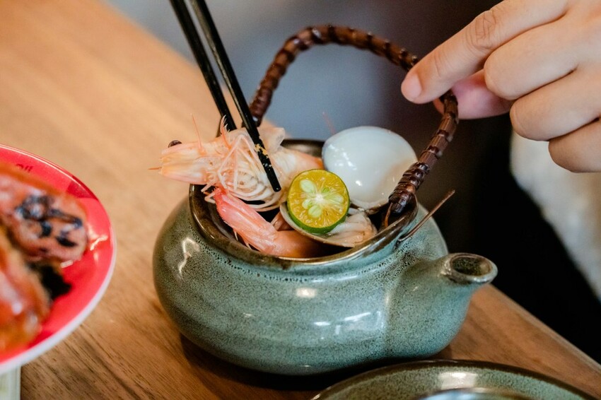 滿滿海鮮的土瓶蒸有嚇到我們,大蝦還到差點夾不出來,整隻有夠肥美!